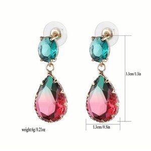 Stunning Red Green & Gold Crystal Fashion Dangle Earrings (M2)