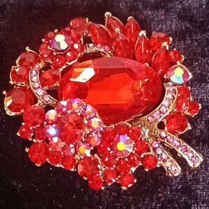 The large center rhinestone is Red and the smaller ones are red to pink !