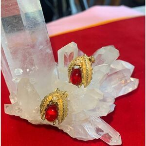 Stunning Red resin Cabochon earrings set in a matte Gold plate design, Vintage