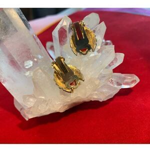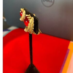 Stunning Red resin Cabochon earrings set in a matte Gold plate design, Vintage