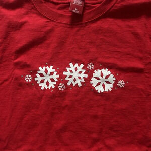 Stunning Retro Womens Red Snowflake Crew Neck Long Sleeve T Shirt Tee Size M