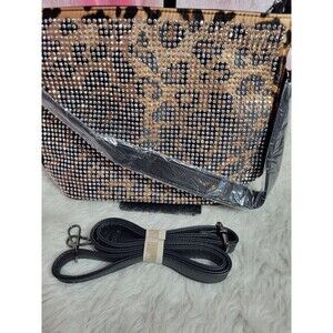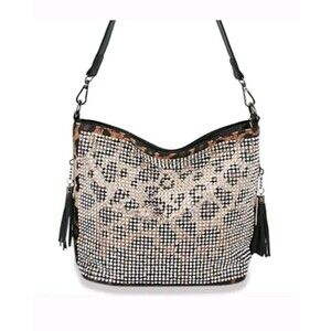 Stunning Rhinestone Embellished Leopard Black Handbag Hobo Purse 11x8x4