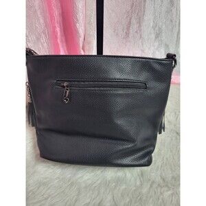 This stunning rhinestone embellished leopard black handbag hobo purse is a fashionable and glamorous accessory for any woman. The medium-sized rectangular bag features a zipper closure and a black handle/strap with gold hardware accents. The exterior is made of faux leather with an animal print leopard pattern, perfect for both party/cocktail and casual occasions. The bag also includes a shopper tote and an adjustable shoulder strap for added convenience and versatility. Stand out from the crowd with this blinged-out handbag from Handbag Express.