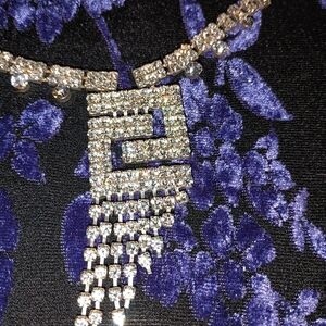 This stunning silver necklace features sparkling rhinestones, perfect for adding a touch of elegance to any outfit. Ideal for special occasions or everyday wear.