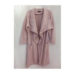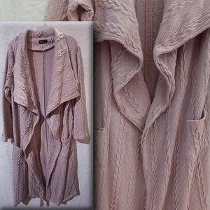 Stunning Rose Mauve Cable Knit (look) Long Duster Sweater Cardigan By REBORN LG