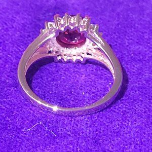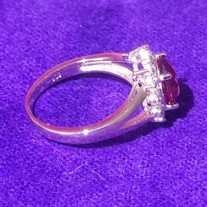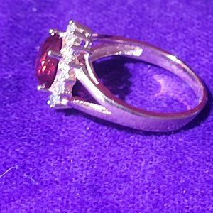 This stunning ring has a 2.5-carat ruby set in 14k rose gold over sterling silver and is a size 6.5.