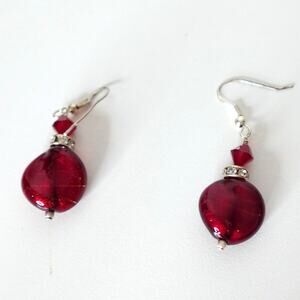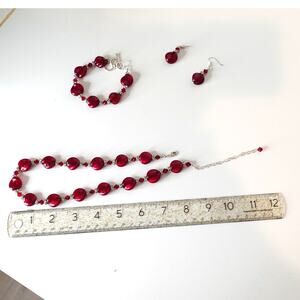 Stunning Ruby Red Necklace Set / Murano Glass/Sterling Silver/ Swarovski Set