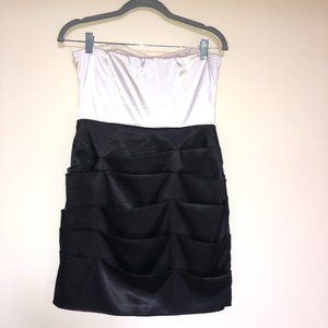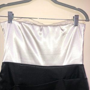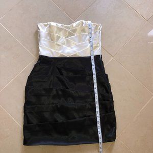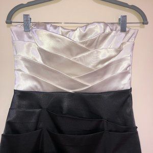 Stunning Satiny Mini Cream & Black Strapless Dress in Size Junior's 7. Gently used, no flaws.