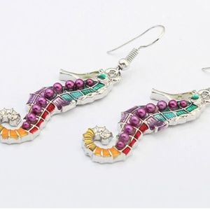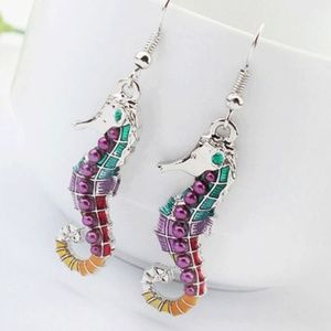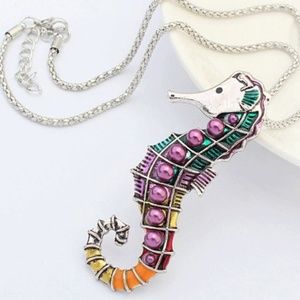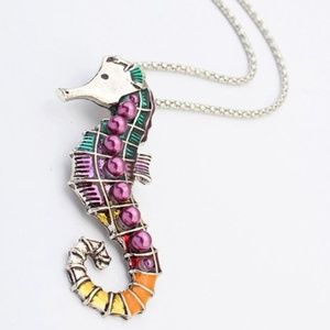 The colorful seahorse pendant on the necklace is about 3 inches tall and 1 inch wide.