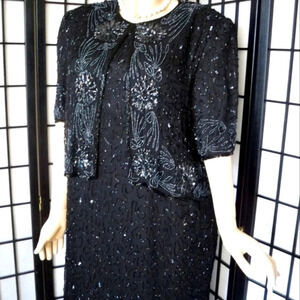 Gorgeous black dress with sparkling hand sewn beads on 100% silk. Special occasion. Size 2x fits like an 18.