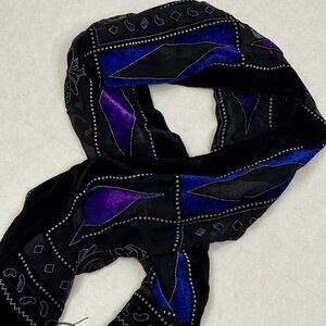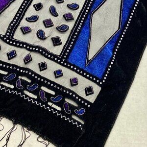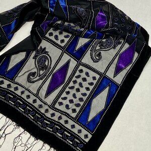 Stunning Silk and Viscose Black Multi-Color Scarf with Fringe