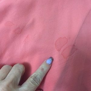 Sultry silk salmon dress - gorgeous ! Body / 96% cotton - 4% spandex / trim 💯 % silk chiffon / stunning stunning material on this / nice shape on top back / can be worn w a top under - or no top -elastic mid - dress - lining on bottom of dress goes past silk part on top / looks like a tier 🌹some kind of water stain on back (prob will come out in dry cleaners)as shown in pic n general light wear / worn 3x - enjoy whoever gets this beauty ! "Class"🌸So comfortable too 🌺🌸