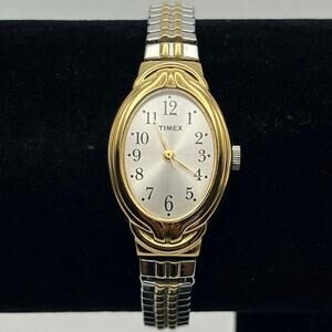 Stunning Silver & Gold Timex Watch. Fully functional with brand new batteries. Adjustable metal band fits 6 1/2 in wrist or near.