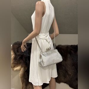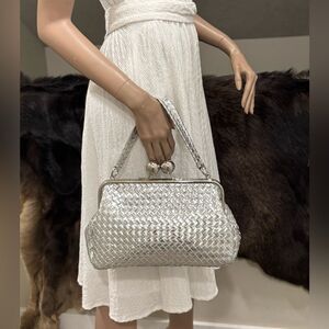Stunning Silver Woven Leather Handmade Large Ball Kisslock Purse/Multi Use Bag