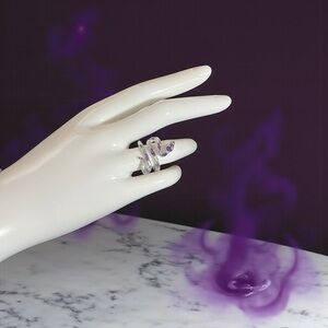 Elegant silver snake ring with striking purple accents. Perfect for adding a unique touch to any outfit.