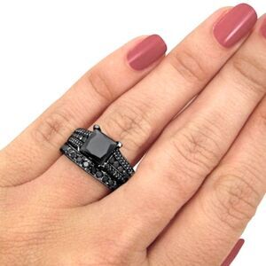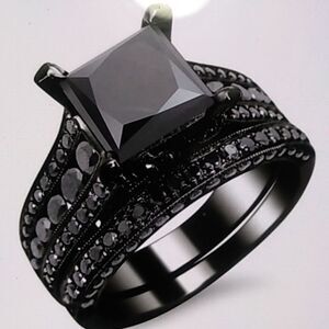✨ ✨Stunning Simulated Black Sapphire 2 pcs Wedding Eternity Band Ring Set 💍✨ ✨
