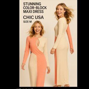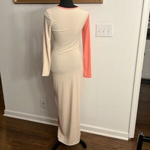 Stunning Spandex Block Color Maxi Dress, Sz. M. May run small. Model is size 4 at height of 5’7”. Barely worn. An absolute show-stopper at any event. An excellent addition to any closet.