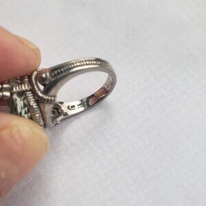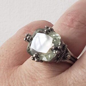 Stunning Sterling Silver Cocktail Ring Pale Blue Green Stone Signed JL