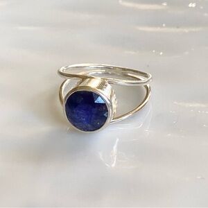 This stunning ring features a deep blue gemstone set in a sleek silver band. Artisan crafted. Will fit 7.5, 8ish. See pictures Perfect for everyday wear.