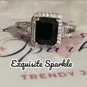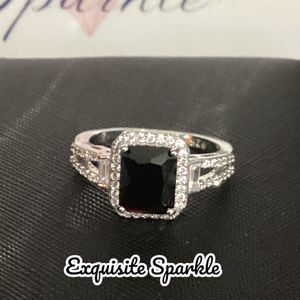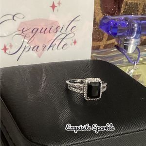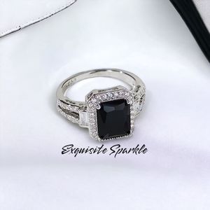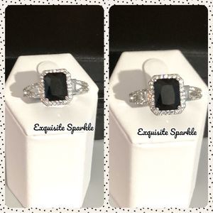 🖤Stunning Sterling Silver (925) 3.75C Emerald Cut Genuine Black Onyx 💎 R…