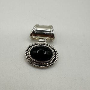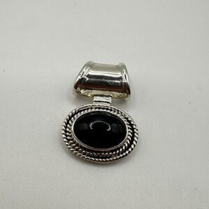 Stunning Sterling Silver TAXCO Black Onyx cabochon, pendant/slide!