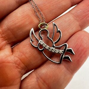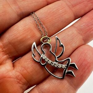 Stunning Sterling silver Angel with diamond accents, 18" 925 chain, necklace!