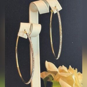 Stunning Thin Gold Tone Crystal 2.25 inch Hoops made with Swarovski Crystals