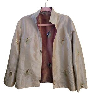 Stunning Unique Beige Sequined Embroidered Asian Inspired Kimono Size M