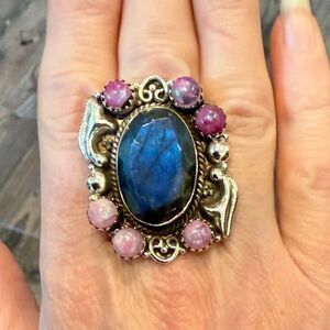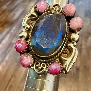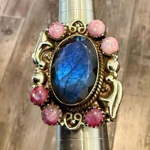 Stunning Unique Labradorite And Opal Statement Ring Southwestern Framed Size 8