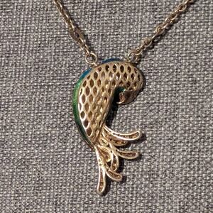 Stunning Vermeil 18Kt Gold Over Sterling Silver Enamel CZ Parrot Necklace 20"
