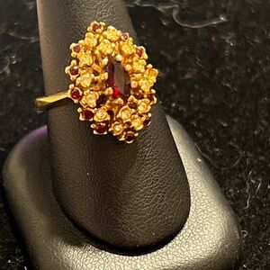 Stunning Vintage 14K HGE Lind Ring with Ruby Red Faux Gemstone - Floral Design