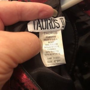 Vintage 1975 Taurus II long dress. The Dress is a beautiful red with Black flower pattern and black trim. The photos don't do it justice. It has a nice shimmer look. Material is Rayon/Acetate. It was proudly made by the Union of Needletrades, Industrial and Textile Employees in the USA. This is a vintage size is 4P. Please check measurements as the measurements seem a little large for a size 4. It fits on my size 8 mannequin. Flat measurements: Bust: 19", waist: 17", Hips: 20", Length: 49"