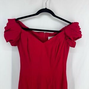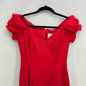 GORGEOUS red dress! Perfect for weddings, parties, or any special occasion! Sweetheart neckline and little off should sleeves are so sexy and elegant at the same time.