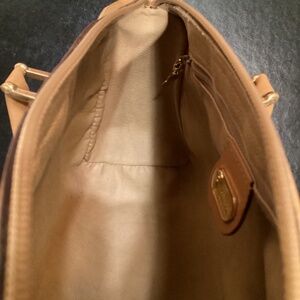 Excellent condition, Never used. One owner, purchased in Milan during early 80’s. Green and red stripe is unfaded. Inside is dean with one small mark - see photo. Approx measurement L -13, H 7, D 4.5 inches. Crossbody leather strap is 34 inches. Zip closure plus one inside zip pocket.
