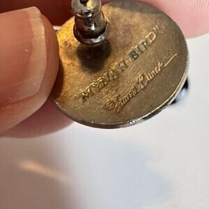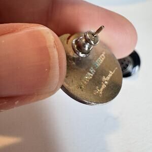 Stunning Vintage Laurel Burch Mynah Bird Black Enamel Disc Earrings
