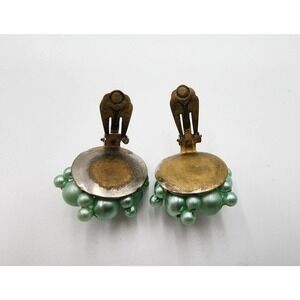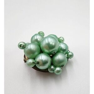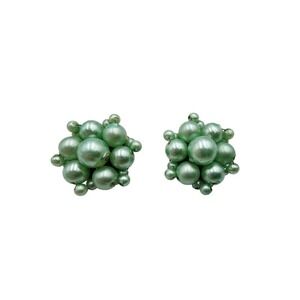 Stunning Vintage Mint Green Faux Pearl Cluster Clip On Earrings Hong Kong