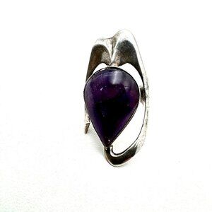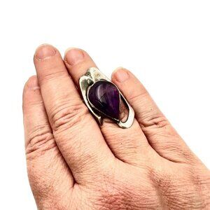Stunning Vintage Modernist Womens Ring Sterling Silver Amethyst Size 6.5