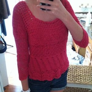 Hot pink vintage sweater with beautiful, intricate crocheting. Very trendy. Gently worn. Runs very small.