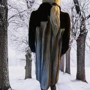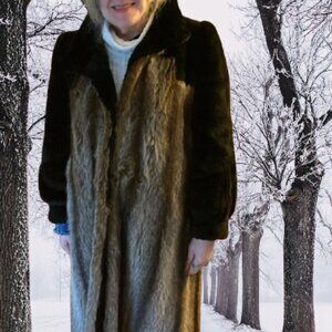 Stunning Vintage Real Fur Coat 2-Tone Size Large Mob Wife Luxury Winter