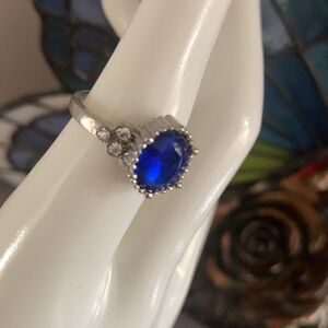 Stunning Sapphire Blue cabochon ring, in Silver tone
