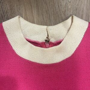 Stunning Vintage St.John Knitware Pink and cream Crew Neck Dress size 10