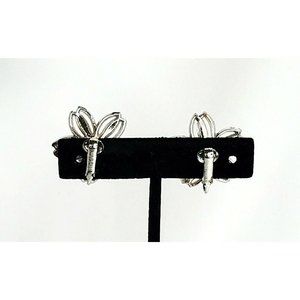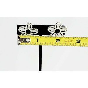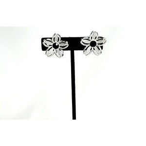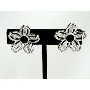 Stunning Vtg Sarah Coventry Black with Silver Tone Flower Clip Earrings Signed