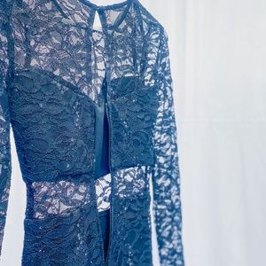 Women's Bodycon Lace Black Dress Sequin Cut Out Statement Gown Bisou Bisou