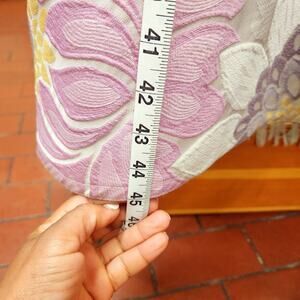 Absolutely beautiful skirt, not sure the exact fabric but it reminds me of a Victorian style upholstery fabric. Definitely hand made, one of a kind with plenty of extra room to easily move the closure to fit larger or smaller plus woman. I would say a 2xl to maybe 4xl could make this skirt work.