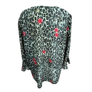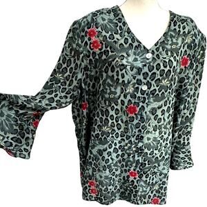Stunning! Y2K Leopard Print Blouse,No Size, Button Up ,Flare Wrists,Gypsy,Office
