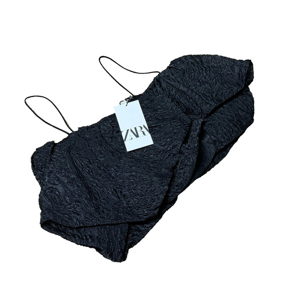 Stunning Zara UK Cropped Statement Top Black Organza Sz Medium NWT Tank Bralette