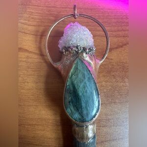 Stunning and Massive Crystal and Labradorite Copper Pendant with genuine Horn