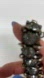 This is a very unique style, both for Kramer and in general. The center stones are large clear rhinestones with black netting over them. The outside of the bracelet has small grey rhinestones and there are larger silver loops between each link of the bracelet. The silver plating is antiqued.