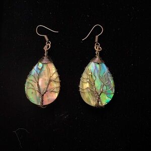 Stunning boho iridescent shell earrings with tree of life metal detail