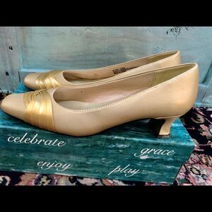 Beautiful comfortable heels by Easy Street in size 10 medium. Heels are 1.5”. There is a little bump on the inside of the heel on one shoe besides that they are in excellent condition. Kept in the original box.